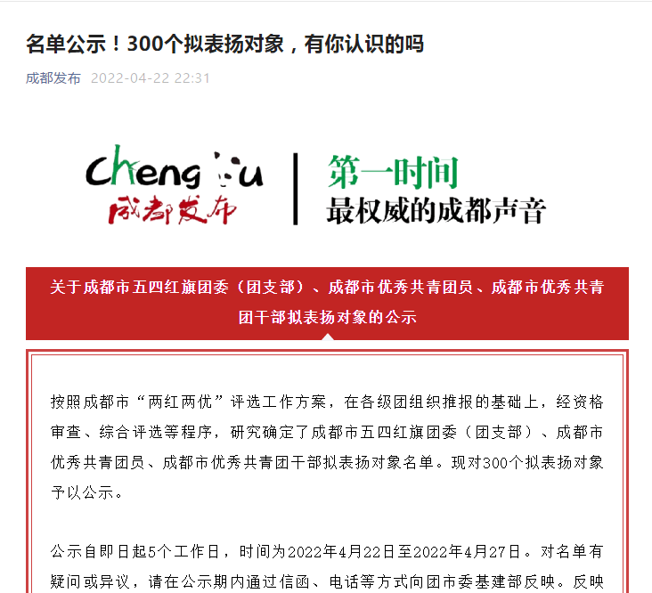 喜報我公司楊春鋒同志在成都市“兩紅兩優(yōu)”評選工作中,被評為成都市優(yōu)秀共青團員,現(xiàn)于“成都發(fā)布”官方平臺進行公示。楊春鋒總經(jīng)理助理楊春鋒同志,于2016年畢業(yè)于四...
